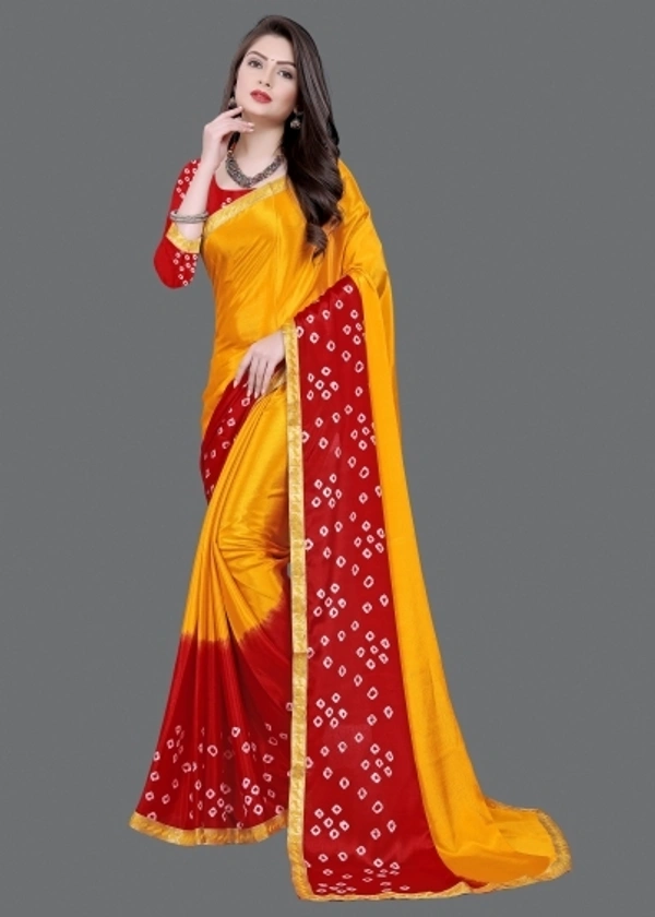 Embellished, Geometric Print, Ombre Bandhani Silk Blend, Lace Saree