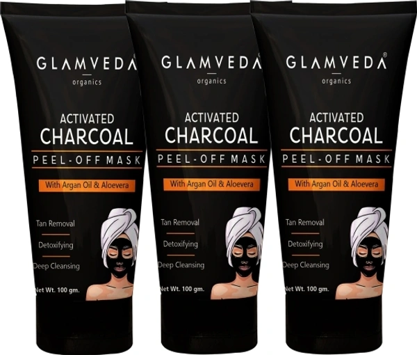 GLAMVEDA Activated Charcoal Blackhead Removal Peel Off Mask Pack Of 3 | 300 gm
