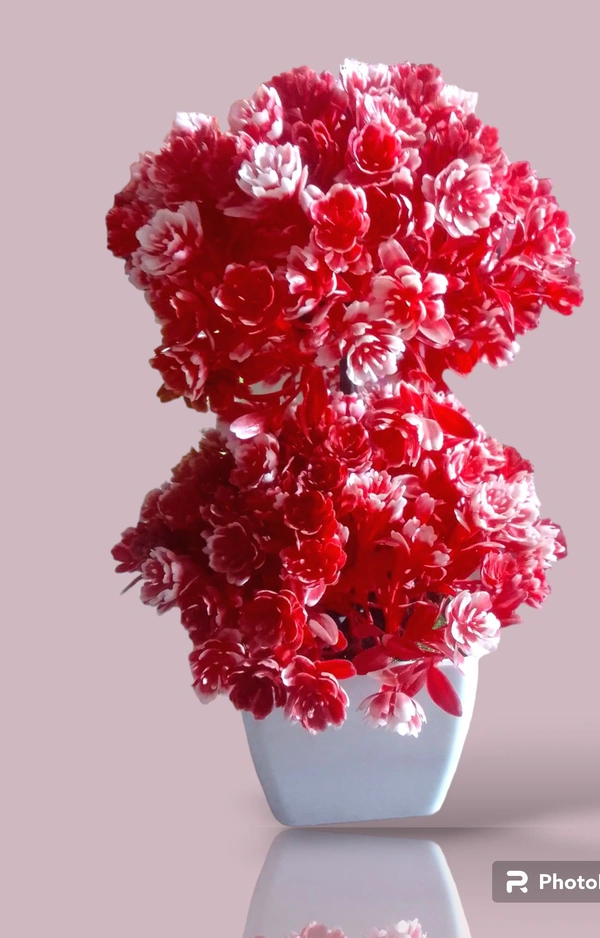 Shanol -Artificial Flower Pot For Home , Living Room ,Table Decor Green, Red Rose Artificial Flower