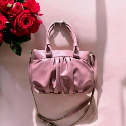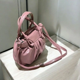 Pleated Faux Leather Crossbody Handbag, Pink, Double Handle with Adjustable Shoulder Strap