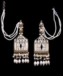 Traditional White Pearl Drop Earrings, Antique Gol...